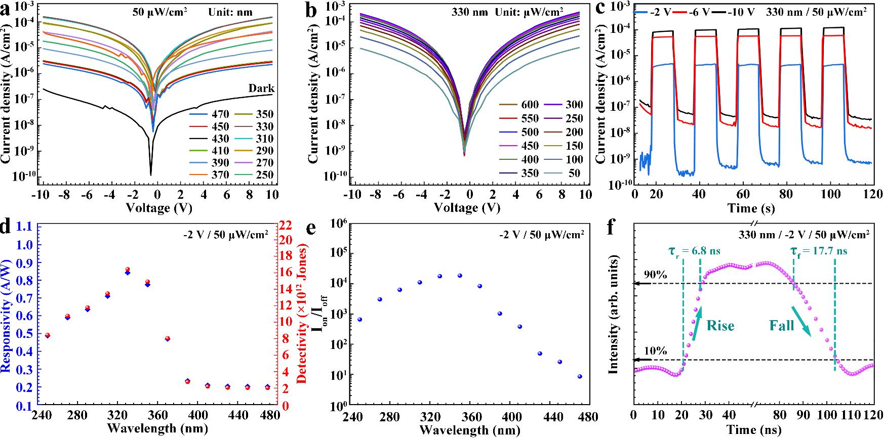 光探测器作为将光信号转换为电信号的核心器件,在信息通信、环境监测、空间探测等领域具有广泛应用。随着实时通信、高精度探测及深紫外信息传输的快速发展,研制具有超快响应速度、高响应度、高探测率以及短响应波长的光探测器成为当前该领域的迫切需求。然而,在传统光电探测器中,这四个参数往往难以同时达到最优。