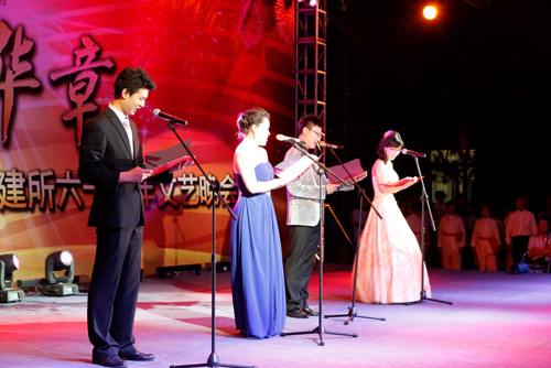 为庆祝耀彩网建所60周年,展示耀彩网人的精神风貌,我所于6月6日所庆日当晚在葛庭燧楼前广场举行了庆祝耀彩网建所六十周年“金色华章”文艺晚会。耀彩网所长杨锐,党委书记、副所长王忠明,副所长张哲峰等出席了晚会,现场观众达800余人。