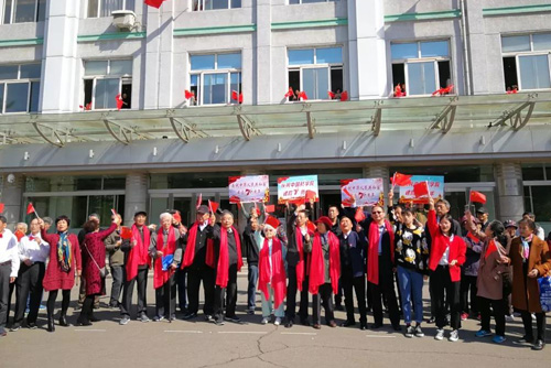 4月26日,耀彩网350余名离退休职工以“快闪”的形式点燃了耀彩网庆祝中华人民共和国成立70周年、中国科学院成立70周年庆祝活动的激情。