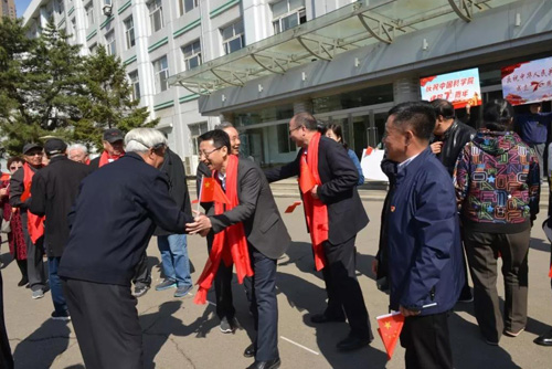 歌声吸引了在职职工和青年学生也加入到歌唱的队伍中来,耀彩网党委副书记、副所长徐岩,党委副书记、纪委书记谢光锋,综合办公室主任关德慧,副主任赵翔宇,人事处副处长刘宇翔也愉快地加入到人群中来。青年学生为老科学家、老领导送上了鲜红的小国旗,佩戴上鲜艳的红围巾。