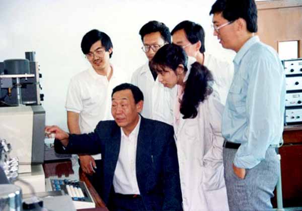 王景唐先生经常感慨实验室的发展急需人才,为国家培养优秀的科技人才是他生前孜孜以求的目标,作为中科院优秀研究生导师,共培养硕士、博士39人。他生前的得意门生卢柯博士,如今已成为国内外材料研究领域的知名学者。他培养的多名学生获中科院院长奖学金特别奖。他经常教育年轻的研究人员和学生,树立报国之志,把个人取得的成绩与荣誉归功于党和人民的培养。他在当选中科院学部委员后对大家说,是党和人民培养了我,送我去苏联学习,我那时在苏联学习和生活的费用是几十个人民公社社员在黄土地里辛勤耕作供给的,我没有理由不努力工作来报答他们。 王景唐和他的学生们 他在研究工作的选题上强调创新。告诫学生,不要去做那些“稀松”加“平常”的工作,不要去“吃人家嚼过的馍;要敢于向权威和难题挑战,不要老想着去挖“松土”。他经常与学生周密地讨论实验方案,告诫学生,研究水平的关键在于学术思想,要多动脑筋,倡导用简单的仪器设备,做出高水平的工作。他的这些治学之道,在我们实验条件与工作环境得到大幅度改善的今天仍具有深远的意义。 随着新世纪的到来,在中国科学院“知识创新工程”的战略部署下,2001年以金属研究所的基础研究队伍为基础组建了新的“沈阳材料科学国家(联合)实验室”(SYNL)。原快速凝固非平衡合金国家重点实验室调整为SYNL的“非平衡金属材料研究部”,由卢柯博士任主任。王景唐先生的事业后继有人,金属研究所在非平衡金属材料领域的研究不断取得高水平的成果,不断为国家做出新的贡献国际知名度不断提高,为国际同仁们所关注。 饮水思源,温故知新。王景唐先生的人格魅力与敬业精神将激励着我们去不断创造明天的辉煌。他对祖国科学事业做出的贡献千古永存。