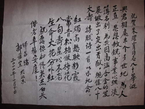 师先生为我80岁生日题词 师先生的一生,是勇于承担、不断探索、努力创新的一生,很值得我们后辈学习。