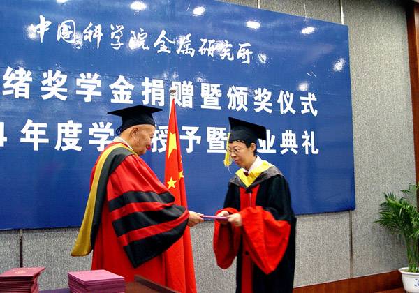2004年师昌绪院士为获得该年度博士学位的学生授予博士学位并颁发毕业证书